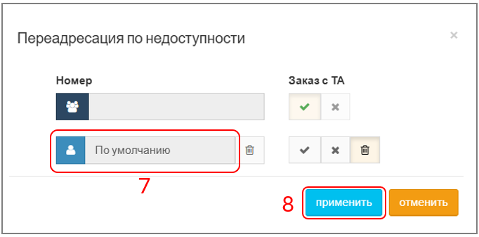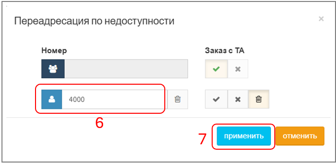 1. При успешном создании услуги поле "Переадресация по недоступности" изменит цвет на светло-синий: