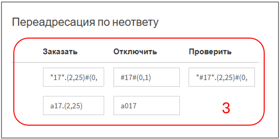 1. Найдите поле "Переадресация по неответу" (в данном примере — значения "кодов услуги" по умолчанию):