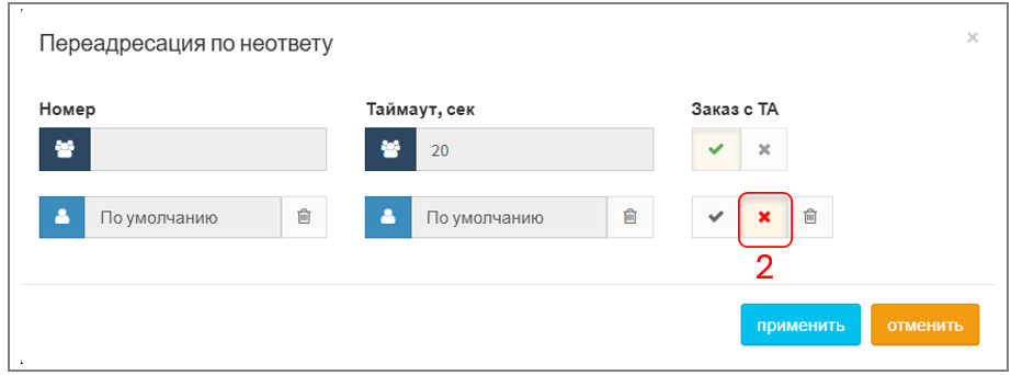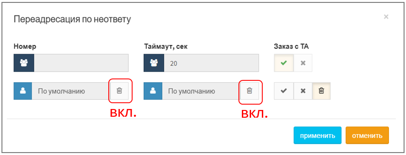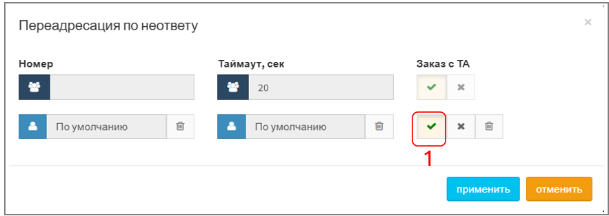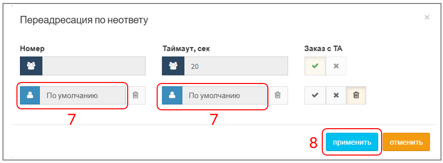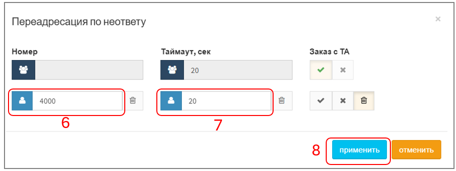 1. При успешном создании услуги поле "Переадресация по неответу" изменит цвет на светло-синий: