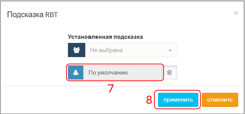 При наведении курсора на поле "Подсказка RBT" появится меню "Настроить". После нажатия ― отобразится окно с настройками: