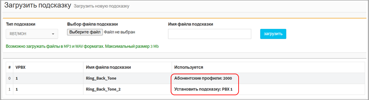 - "Абонентские профили:2000"— если указан один номер — подсказка применяется персонально к этому конкретному номеру.